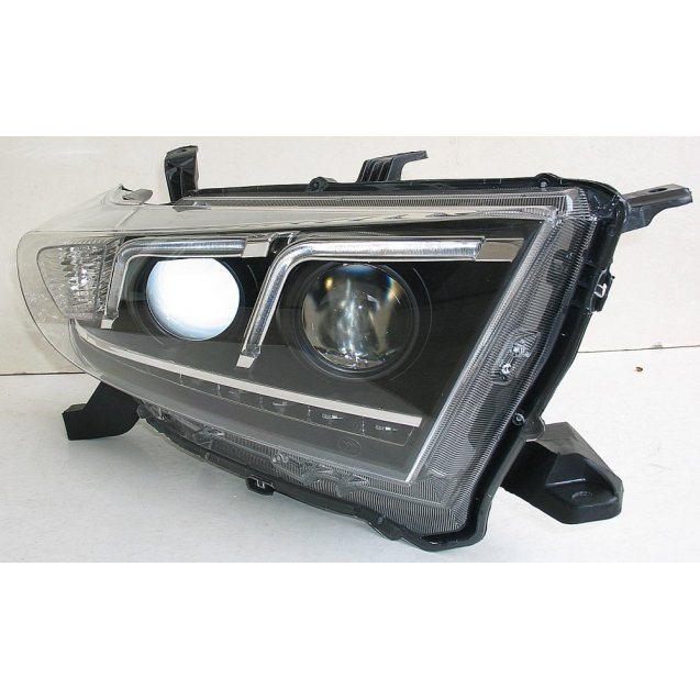 Ксеноновая линза с ближнего и дальнего света. Светодиодные габаритные огни и функция полноценных дневных ходовых огней ДХО. . Купить переднюю альтернативную ксеноновую оптику для Toyota Highlander 2012 .