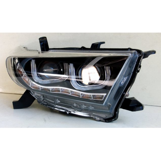 Ксеноновая линза с ближнего и дальнего света. Светодиодные габаритные огни и функция полноценных дневных ходовых огней ДХО. . Купить переднюю альтернативную ксеноновую оптику для Toyota Highlander 2012 .